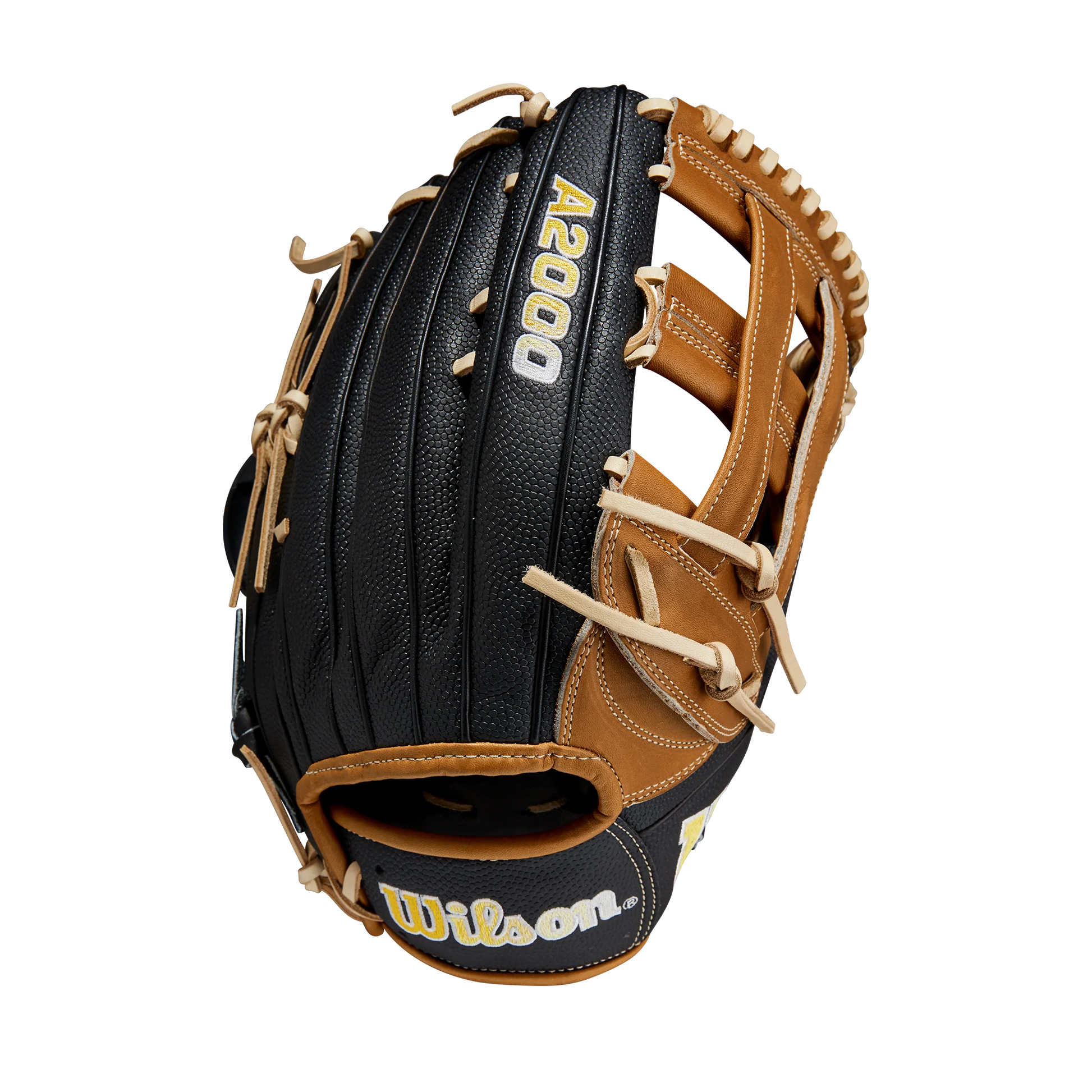Yellow and White Gradient Bold Logos enhance the A2000’s modern look, and lightweight SuperSkin reduces overall glove weight, making it easy to glide across the outfield grass for clutch plays in crucial moments.